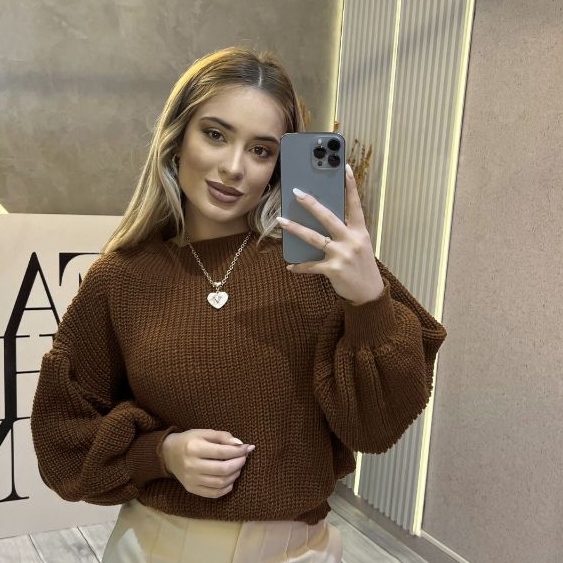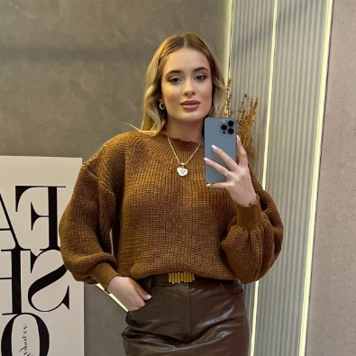 A Blusa SELINE quebra esse padrão. Com malha tricotada grossa e modelagem moderna, ela une conforto térmico real com um visual elegante, que combina com jeans, leggings ou saia.